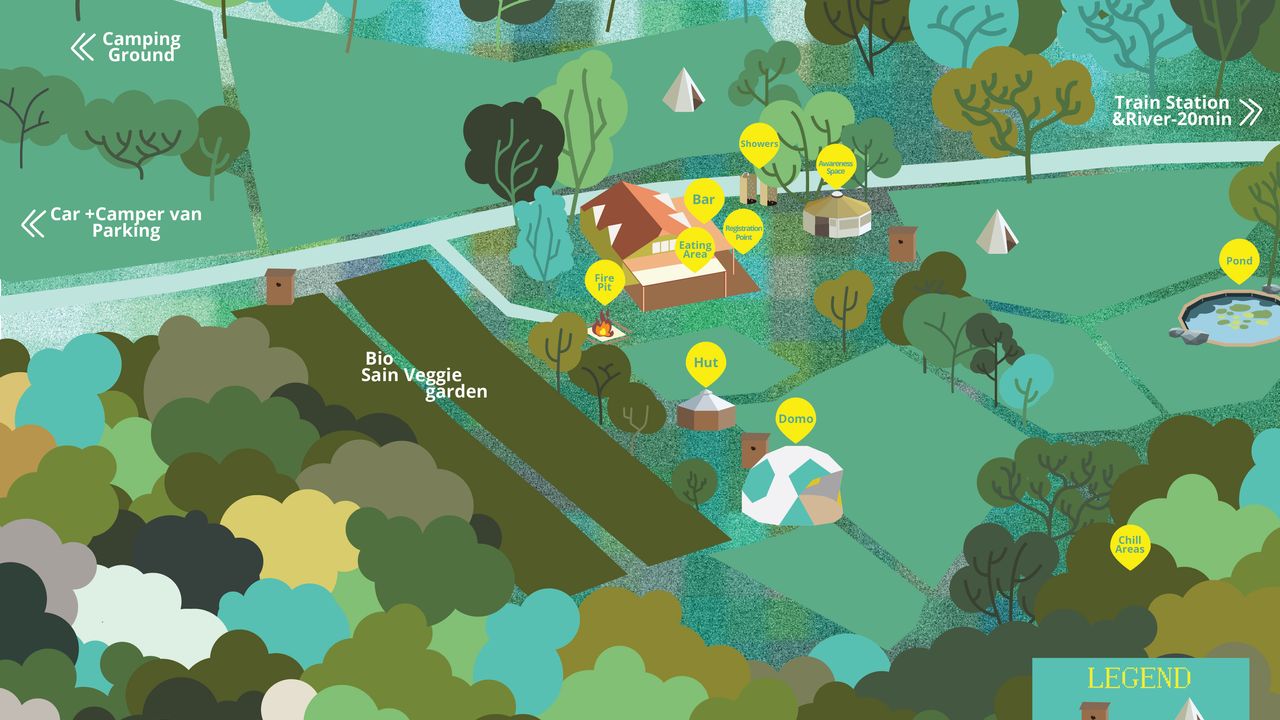 The festival site is then a ~20 minutes’ walk from the train station, you will find clearly labelled signs that lead you all the way to “Kunst in der Natur” and we will be keeping an eye on the Telegram chat in case anyone gets lost. Essentially, you would walk away from the river and towards the hill where you will cross a small village. You want to stay slightly right and continue upwards and upwards. You will eventually leave the village and enter the forest where you can stay on the main path until you see the registration booth :)